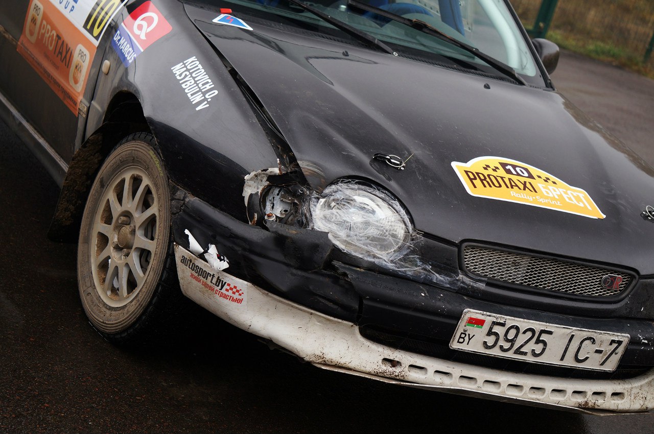 7 ноября 2015 г. в "красный день календаря" состоялась последняя раллийная гонка сезона - ралли-спринт PROTAXI Брест 2015. Как это было глазами нашего экипажа - читайте ниже.Главной неожиданность перед стартом для нас стало то, что организаторы разрешили шипы! Как?? Это автоматически лишало нас всякого преимущества перед автомобилями на т. н. "гвоздях"...Грунтовый доп и так, будучи очень скользким, - еще стал и капитально разрытым. На втором проезде эта раскопанность помешала затормозить и "завернуть" машину куда надо - в итоге - встреча с деревом!..Поврежденными оказались бампер, крыло, фара с поворотником и кусочек капота, но "жизненно важные" радиатор и маслокулер оказались не задеты. И мы продолжили гонку... в несколько другом образе...Доп постепенно превращался в "кашу". На СУ-4 ехать было уже невозможно, и мы себе же и "привезли". Но задел предыдущих проездов позволил нам выполнить задачу максимум на эту гонку - придти первыми. Попутно мы еще приехали и 3-ми в моноприводе, что явилось неожиданным приятным бонусом. Все! Сезон 2015 года закончен, мы третьи в Кубке РБ в своем классе! Насыщенный год, удачное окончание! Будем отдыхать, чинить авто и готовиться к сезону 2016! Галерея с гонки на сайте: Ралли-спринт "Брест-2015"Онборд-видео СУ1:P.S. Очень жаль Николая Тиминского, который перевернулся два раза на своем Ситроене С2R2 (на видео выше на 4:40). Экипаж не пострадал, но на машине нет практически ни одного целого элемента... Удачи ему в восстановлении!Фото в статье: BrestCITY.com, Алиса Зацаринная, Rally2.by, Виртуальный Брест, Дилер Холл и ROADRUNNER'S.
