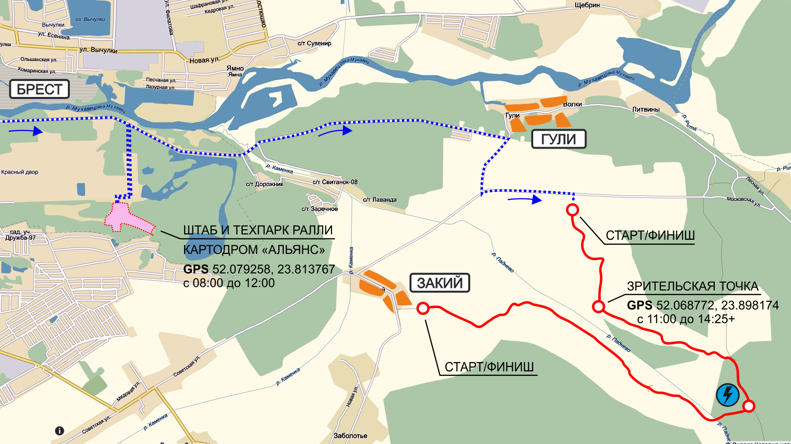 Приглашаем всех посетить город-герой Брест 7 ноября 2015 года (суббота). В этот праздничный день состоится последний этап Кубка Беларуси по ралли-спринту, в котором мы также примем участие. Этот последний этап будет завершать сезон, и наш экипаж будет подводить итоги этого насыщенного раллийного года, в котором мы впервые поехали в ралли, построили собственный автомобиль, и заработали первые очки и подиумы.Программа мероприятия:08:00 - 11:48 Подготовка спортивных автомобилей в техпарке (картодром “Альянс”);12:00 - 12:15 Торжественный старт гонки (картодром “Альянс”);12:15 - 12:50 Гонка на первой секции (окрестности н.п. Закий);12:50 - 13:50 Сервис для автомобилей участников (картодром “Альянс”);13:50 - 14:30 Гонка на второй секции (окрестности н.п. Закий);14:30 - 16:00 Выставка спортивных автомобилей (картодром “Альянс”);16:30 - 17:00 Пресс-конференция с лидерами (здание картодрома);17:00 - 17:30 Торжественное закрытие и награждение экипажей в закрытом парке.Схема спецучастка:СПИСОК ЗАЯВЛЕННЫХ ЭКИПАЖЕЙ№КОМАНДАTEAMВОДИТЕЛЬ 1ВОДИТЕЛЬ 2НАЦNATАВТОМОБИЛЬCARКЛАССCLASS1ГолобородькоЦырфаBLRMitsubishi Lancer EVO XБ-122АлтуфьевМинкевичBLRSubaru ImprezaБ-123ДОСААФВязовичАхремчикBLRSubaru Impreza WRX STIБ-124ДОСААФ ГомельСеменчукМельниченкоBLRFord FiestaБ-115КовалевскийЩелоковBLRRenault Clio RSБ-116MC2ТиминскийНовиковBLRCitroen C2R2Б-117MC2НасыбулинКотовичBLRToyota Corolla G6RБ-108MC2МицкевичВашкевичBLRCitroen C2Б-109ВашкевичФилоненкоBLRVW GolfБ-1010ДОСААФ ГомельКрупенькоКондратеняBLRRenault MeganeБ-1111Подробности на Rally2.by.ДО ВСТРЕЧИ НА ГОНКЕ!